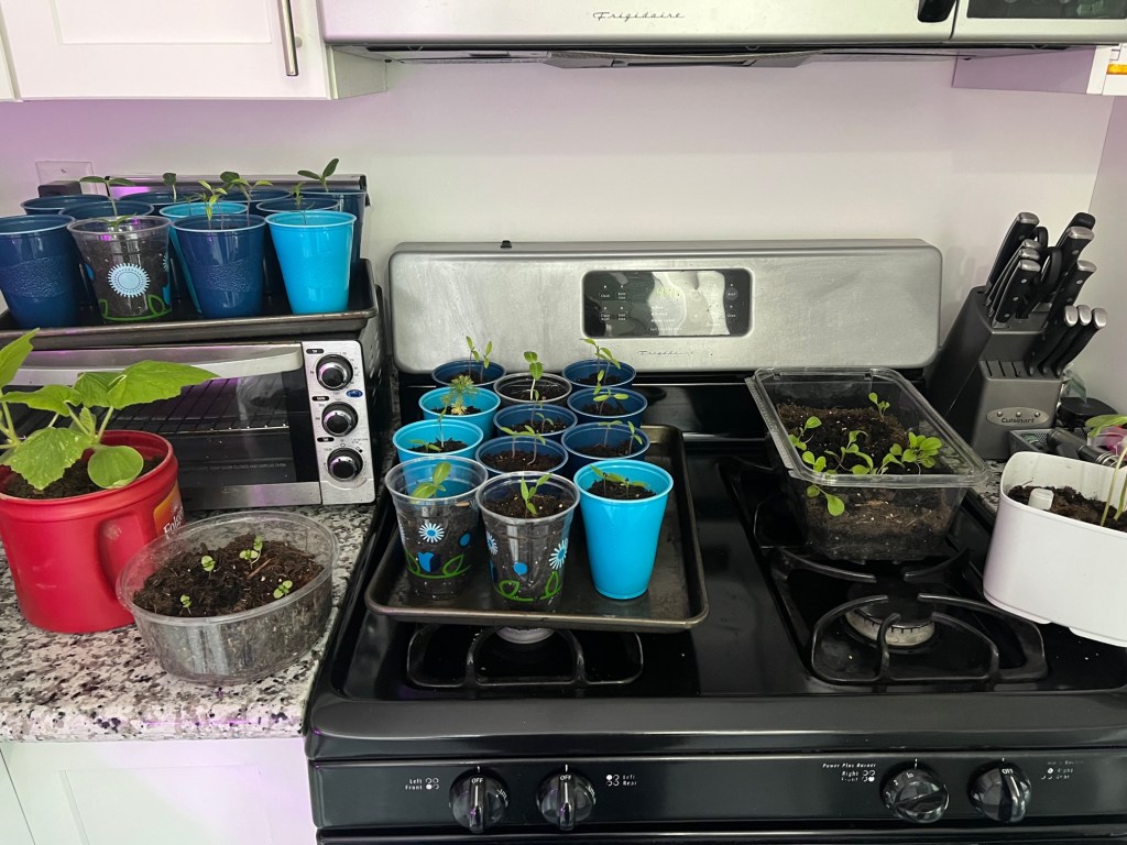 Social media is both helpful and dangerous. We’re seeing gardeners pulling beautiful harvests right now, and we haven’t even gotten our plants in the ground! But those people are either much farther south than us, or have some kind of magical powers that we don’t (yet). So while it feels like we’re way behind the curve, I’d rather have a kitchen counter full of live seedlings than a garden bed full of dead ones.